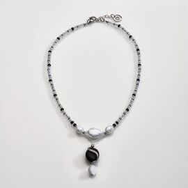 Колье Фрида 2 черно-белое, Муранское стекло