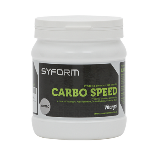"Карбо Спид" обогащен комплексом витаминов, необходимых нашему организму для выработки энергии, и представляет собой порошок растворимый в воде, благодаря чему мы получаем гипотонический напиток, который всасываясь в желудке, позволяет обеспечить постоянный источник энергии для мышц.